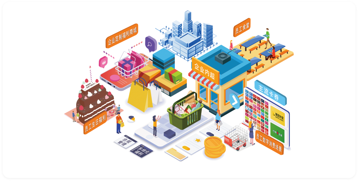 配合線下指定簽約商戶,補(bǔ)齊員工生活消費(fèi)場(chǎng)景,可根據(jù)特定需求,接入指定場(chǎng)景;提供線上福利商城,同步品牌優(yōu)惠活動(dòng),根據(jù)需求上架商品,一鍵代發(fā)。